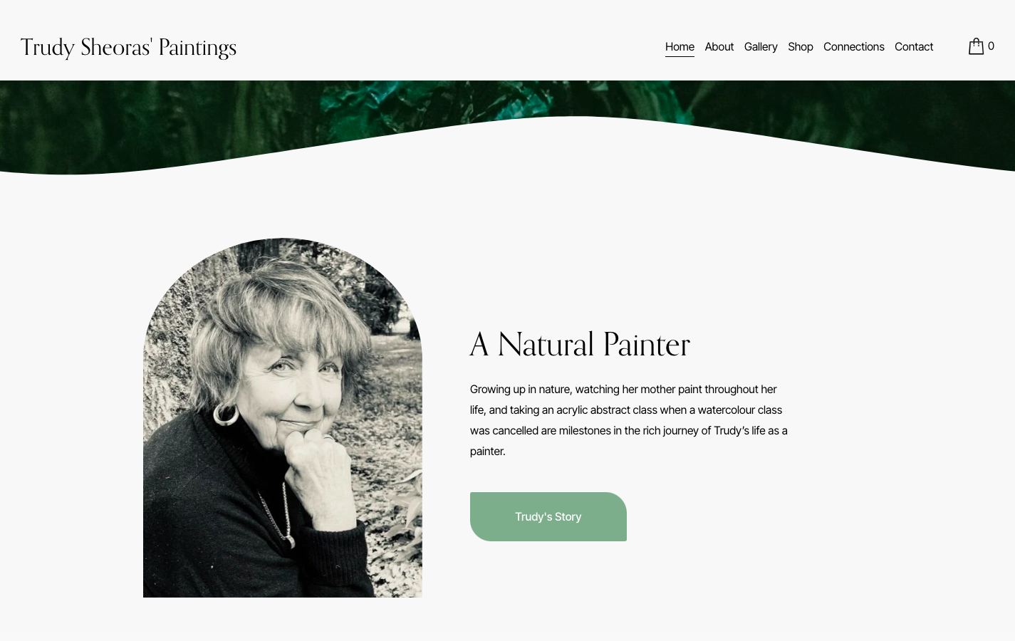 Trudy Sheoras Paintings is the communal effort of an artist, her daughter, and myself. Elizabeth and Trudy founded the vision for the website, a digital gallery that eventually turned into a commerce website as well, and it was my duty to build the website and a brand for Trudy.